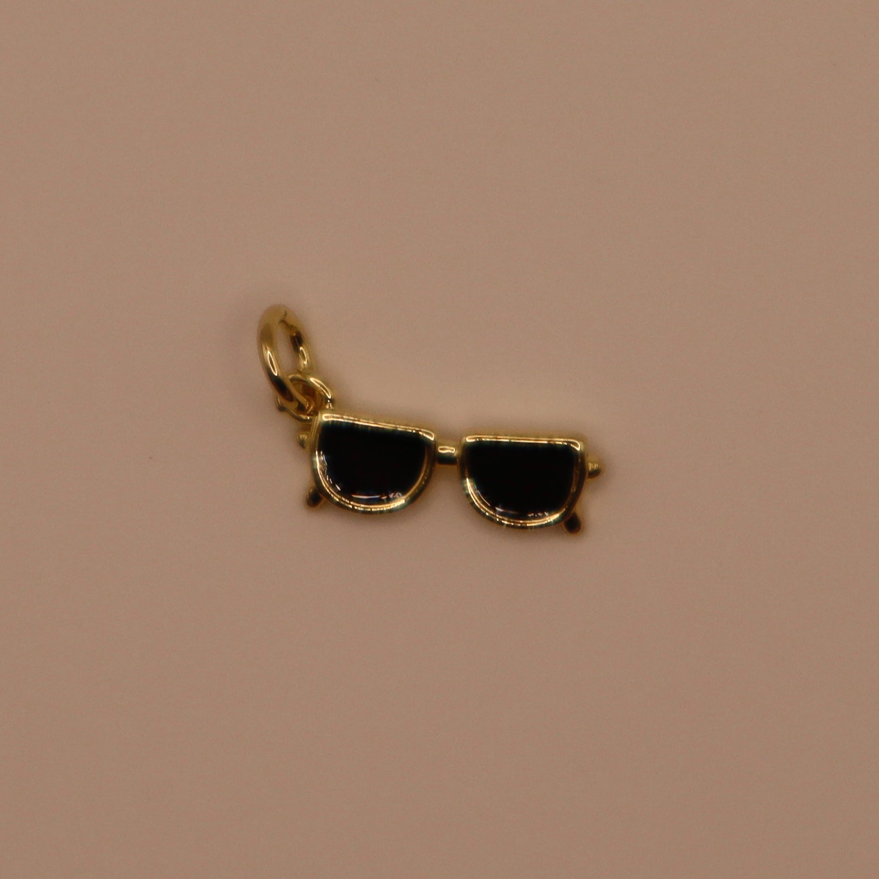 Instant cool, no filter needed. This gold filled sunglasses charm features sleek black enamel lenses for a bold, effortless statement. Whether you're beach-bound or just vibing, this charm adds major attitude to your chain.