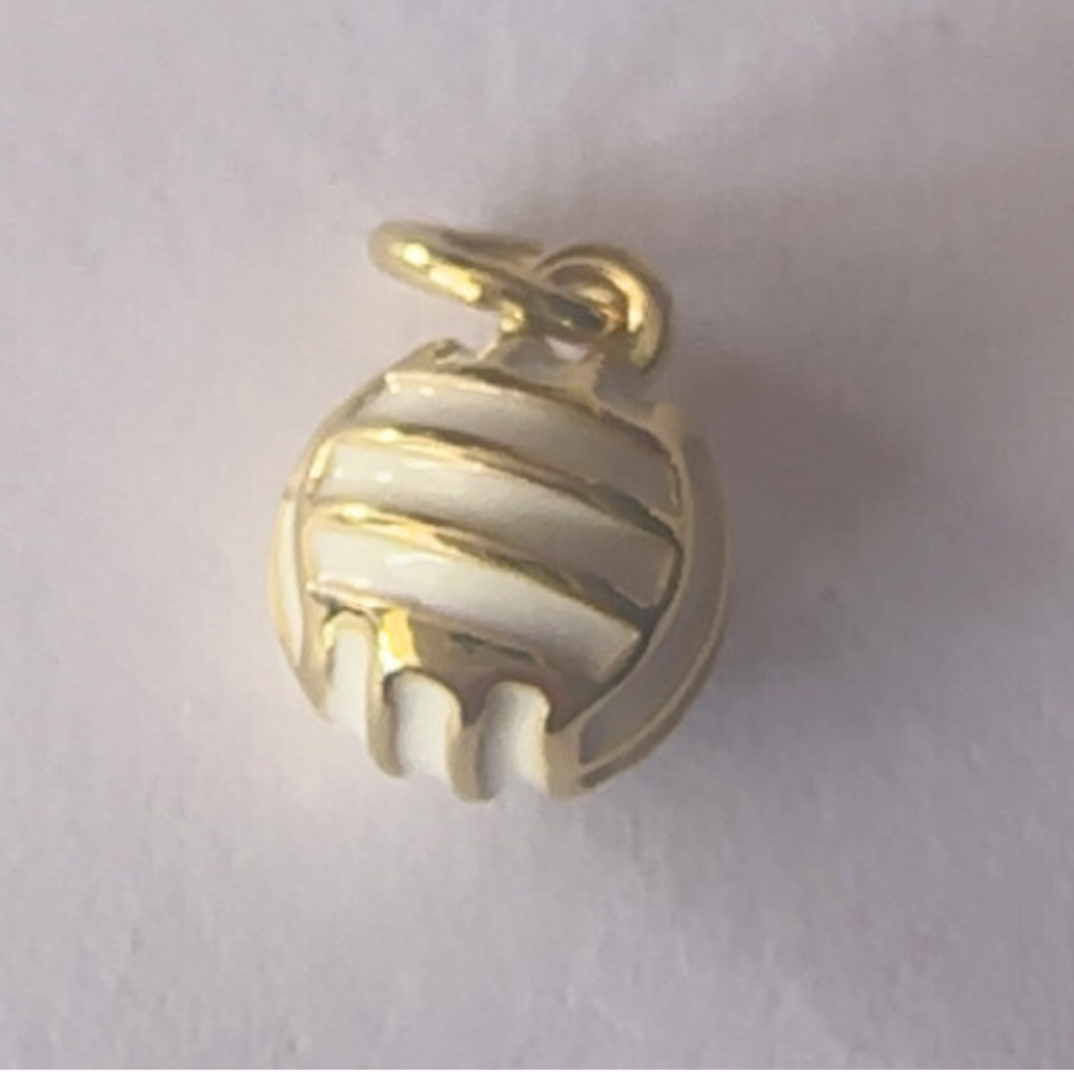 Serve looks on and off the court. This gold filled volleyball charm is detailed with glossy white enamel, bringing a sporty-chic vibe to any necklace or bracelet. Whether you played in high school or just love the game, this charm is a perfect match for your lineup.